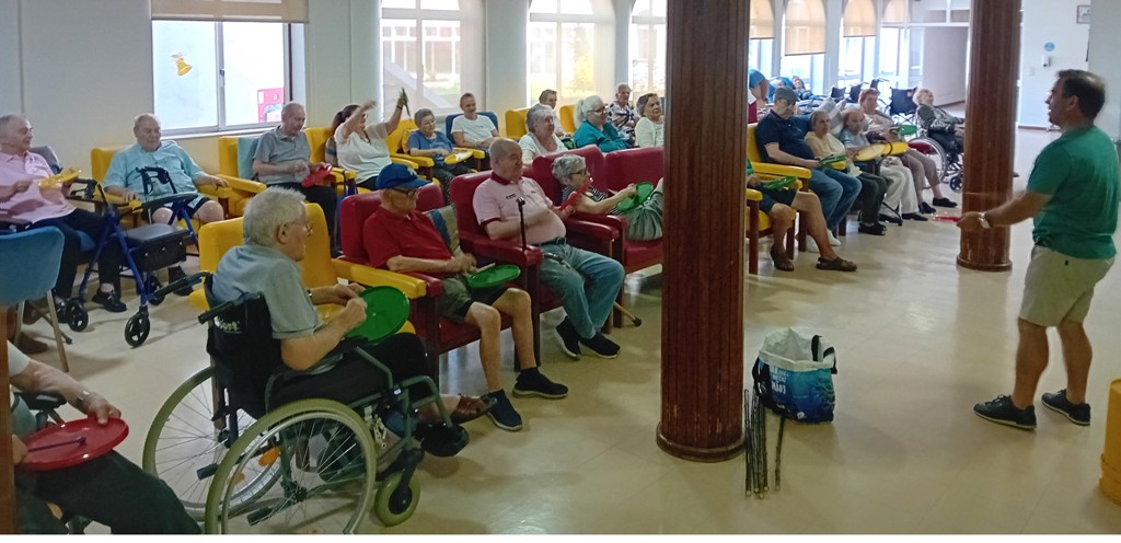 As rimas cantadas, o ritmo cantado, a percussão em roda e os jogos com objetos reutilizados fizeram parte das propostas de atividades apresentadas aos idosos da nossa instituição, proporcionando-lhes uma manhã diferente, vivenciada num ambiente de grande interação, convívio, diversão e bem-estar, com o recurso à música.