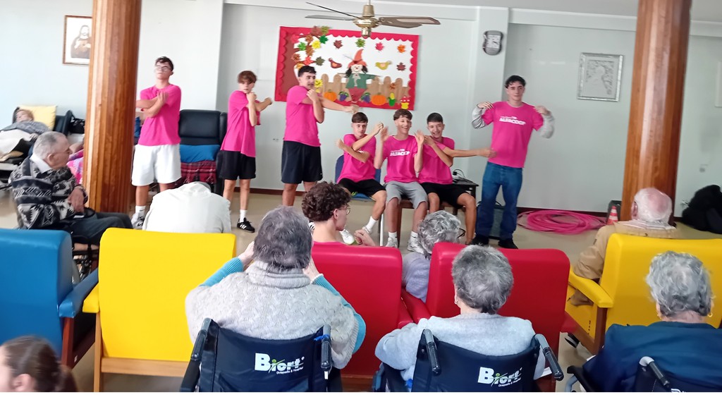 Na passada sexta-feira, dia 7 de novembro, uma turma de alunos que frequenta o 10º ano, do Curso Profissional Técnico de Desporto, do Colégio de Alfacoop, realizou uma visita aos idosos da Estrutura Residencial para Pessoas Idosas (ERPI), proporcionando uma tarde animada com atividades de natureza desportiva e social.
