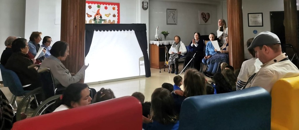 Esta data festiva, foi, também, assinalada na tarde do dia 12 de novembro, na ERPI, com as crianças que frequentam o Pré-escolar, da nossa instituição. Neste sentido, os nossos idosos surpreenderam os mais novos contando a “Lenda de São Martinho” de uma forma criativa e emocionante, através de um teatro de sombras. Entre sombras e luzes, reforçaram-se laços afetivos e transmitiram-se os valores da generosidade, da solidariedade e da amizade.
